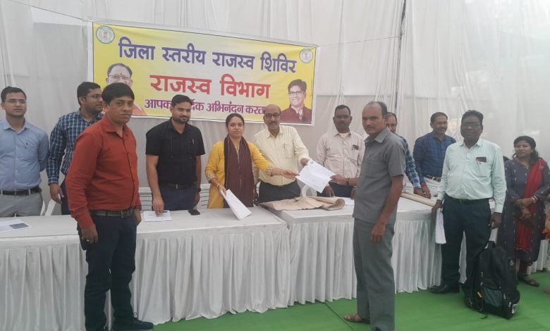 अपर कलेक्टर श्री राजीव कुमार पाण्डेय ने जानकारी देते हुए बताया कि शिविर में खसरा, बी-1 का वाचन किया गया और चालू खसरा का नि:शुल्क वितरण भी किया गया। शिविर में नामांतरण, खाता विभाजन, सीमांकन, व्यपवर्तन, आय, जाति, निवास प्रमाण पत्रों के संबंध में जनसामान्य को आवश्यक जानकारी दी गई तथा आवेदन भी प्राप्त किए गए। लोक सेवा गारंटी अधिनियम, 2011 के संबंध में भी जानकारी दी गयी। अविवादित नामांतरण, अविवादित खाता विभाजन और सीमांकन हेतु तीन माह की समय-सीमा नियत की गई है। आयोजित शिविर में आज कुल 95 प्रकरणों का निराकरण किया गया। इनमें खसरा बी-1 वितरण में 22, किसान किताब वितरण 3, अविवादित नामांतरण-13, अन्य राजस्व के 57 प्रकरणों का निराकरण किया गया। इस दौरान पूर्व में आयोजित शिविर में प्राप्त आवेदन पत्रों के निराकरण की भी समीक्षा की गई। इस अवसर पर शिविर के नोडल अधिकारी संयुक्त कलेक्टर श्रीमती ऋषा ठाकुर, ज्वाईंट कलेक्टर श्री डी.आर.रात्रे, शिविर के सहायक नोडल अधिकारी एसडीएम श्री गगन शर्मा, तहसीलदार श्री लोमस मिरी सहित जनसामान्य उपस्थित रहे।