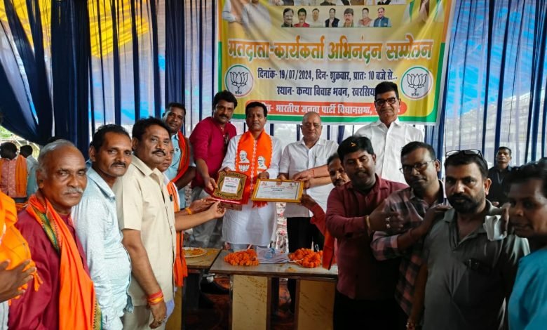 रायगढ़:- खरसिया विधानसभा क्षेत्र के मतदाता और कार्यकर्ता अभिनंदन समारोह का आयोजन कन्या धर्मशाला मे आयोजन किया गया ।सांसद राधेश्याम राठिया एक राष्ट्रीय राजनीतिक दल द्वारा आयोजित मतदाता अभिनंदन समारोह में सांसद राठिया शामिल हुए। इस अवसर पर कई मतदाताओं को उन्होंने सम्मानित किया। आगमन और कार्यक्रम की शुरूआत में सांसद राधेश्याम का स्वागत, अभिनंदन किया गया। सांसद राठिया ने मतदाताओं को संबोधित करते हुए कहा कि आज का दिन आप सभी मतदाताओं के स्वागत अभिनंदन का दिन है। मैं सभी मतदाताओं का हृदय से स्वागत अभिनंदन करता हूं। पीएम मोदी के नेतृत्व में विकसित भारत 2047 विजन में विकसित भारत और विकसित छत्तीसगढ़ बनना है। भारत पुनः विश्व गुरू बनेगा और सोने की चिड़िया कहलाएगा। भारत में कच्चे माल के उत्पादन को बढ़ावा देने के लिए नवीन लक्ष्य रखा गया है। प्रधानमंत्री किसान सम्मान निधि से किसानों को लाभ, धान खरीदी पर किसानों को बोनस, कृषि यंत्रों में सब्सिडी और ड्रोन से खाद का छिड़काव किया जा सकता है। पीएम सूर्य घर योजना से घर-घर बिजली का सोलर लगाइए। अधिक मात्रा में बिजली उत्पन्न होने पर बिजली बेच भी सकते हैं। मंत्री ने अंत में छत्तीसगढ़ी गीत गाया। उल्लेखनीय है कि पीएम सूर्य घर योजना योजना के तहत देश के एक करोड़ घरों के छत में सौर संयंत्र स्थापित करना है। लोगों को 300 यूनिट बिजली निःशुल्क प्रदान किया जाना है। सांसद राधेश्याम राठिया ने खरसिया विधानसभा के सभी मतदाताओं को हृदय से अभिनंदन किया।