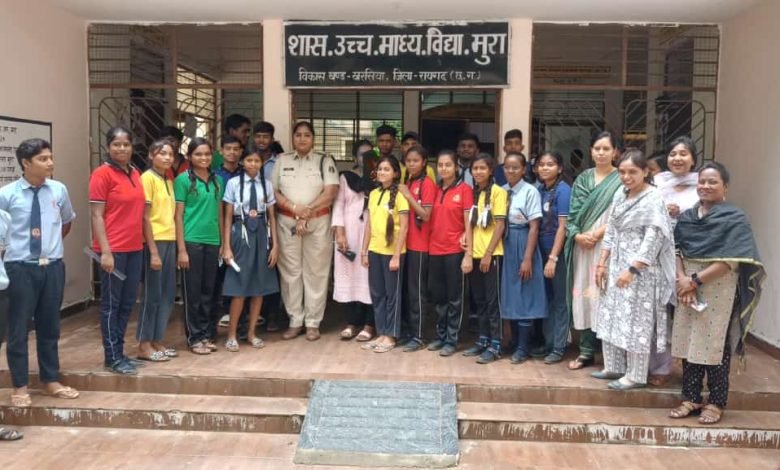 *28 सितंबर, रायगढ़* । पुलिस अधीक्षक श्री दिव्यांग कुमार पटेल के दिशा निर्देशन एवं डीएसपी अनामिका जैन के मार्गदर्शन पर महिला सेल, रायगढ़ की टीम द्वारा खरसिया तहसील के स्वामी आत्मानंद हायर सेकेंडरी स्कूल, मुरा में महिला और बच्चों की सुरक्षा पर आधारित एक विशेष जागरूकता कार्यक्रम का आयोजन किया गया। कार्यक्रम का उद्देश्य छात्रों को अपराधों से सुरक्षा और उनके अधिकारों के प्रति जागरूक करना था।