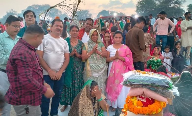 रायगढ़:- भाजपा प्रत्याशी ओपी चौधरी की माता कौशल्या जूटमिल के छठ घाट पर छठ पूजा पर अर्ध्य देने शामिल हुई।
