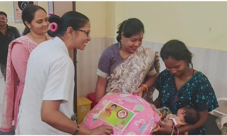 जनपद पंचायत अध्यक्ष हेमलता हरिशंकर चौहान ने सामुदायिक स्वास्थय केंद्र पुसौर में बेटी जन्म पर कीट वितरण की
