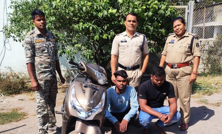 पहली कार्रवाई सोमवार शाम को फव्वारा चौक पतरापाली में की गई, जहां हिरो प्लेजर स्कूटी (क्रमांक CG 13 UF 6487) में शराब तस्करी करते दो आरोपी—दिन दयाल महतो (52 वर्ष), निवासी पतरापाली और भोला चौधरी (44 वर्ष), निवासी खैरपुर—को घेराबंदी कर पकड़ा गया। तलाशी में आरोपियों से 10 लीटर महुआ शराब और 15 पाव गोवा व्हिस्की अंग्रेजी शराब, 4 पाव रोमियो देशी मदिरा बरामद हुआ जिसकी जब्ती की गई ।