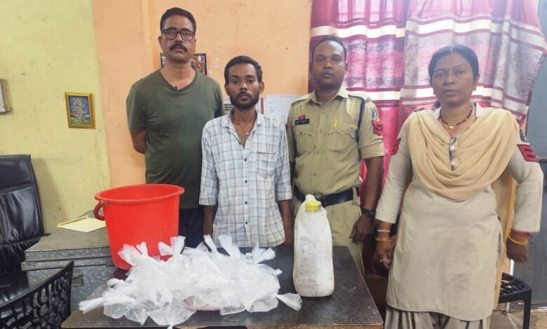 *रायगढ़ 3 मई 2025* । कल शुक्रवार सुबह जुटमिल पुलिस ने हरिजनपारा कोड़ातराई में अवैध शराब बिक्री की सूचना पर दबिश देते हुए एक युवक को गिरफ्तार किया और उसके कब्जे से भारी मात्रा में महुआ शराब बरामद की। थाना प्रभारी प्रशांत राव को मुखबिर से सूचना मिली थी कि रेशम चौहान नामक व्यक्ति अपने घर के पास अवैध रूप से महुआ शराब बेच रहा है। सूचना की तस्दीक के बाद पुलिस टीम ने इलाके की घेराबंदी कर छापेमारी की, जहां संदेही रेशम चौहान को घर पर ही मौजूद पाया गया।