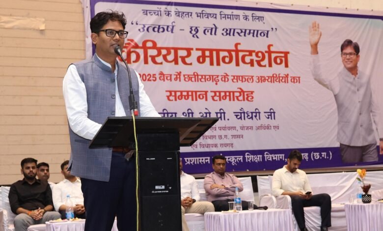 रायगढ़, 2 जून 2025/ वित्त मंत्री श्री ओ.पी.चौधरी के मुख्य आतिथ्य में आज नगर निगम ऑडिटोरियम पंजरी प्लांट में मिशन उत्कर्ष-छू लो आसमान योजना अंतर्गत कैरियर मार्गदर्शन एवं यूपीएससी-2025 बैंच में छत्तीसगढ़ के सफल अभ्यर्थियों के लिए सम्मान समारोह का आयोजन हुआ। इस अवसर पर कलेक्टर श्री मयंक चतुर्वेदी, एसपी श्री दिव्यांग पटेल, सीईओ जिला पंचायत श्री जितेन्द्र यादव, सीएसपी श्री आकाश शुक्ला, डीएफओ श्री अरविंद पीएम उपस्थित रहे।