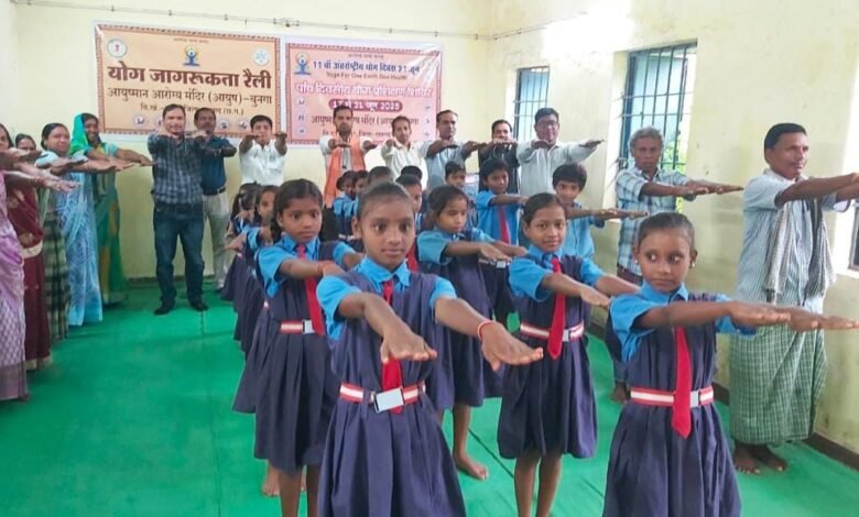 बुनगा में पांच दिवसीय योग शिविर शुरू का शुभारंभ स्कूली बच्चों सहित गांव के लोगों ने किया योगाभ्यास