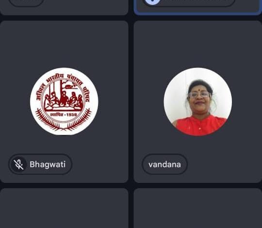 बैठक की अध्यक्षता राष्ट्रीय अध्यक्ष श्री घनश्याम प्रसाद यादव ने की। प्रमुख रूप से राष्ट्रीय महिला प्रकोष्ठ अध्यक्ष वसुंधरा राव, राष्ट्रीय महासचिव एवं छत्तीसगढ़ प्रभारी श्रीमती भगवती मिरज, राष्ट्रीय सलाहकार डॉ. भारत भूषण शर्मा, एवं हरियाणा से राष्ट्रीय उपाध्यक्ष रामप्रकाश अमित कुमार जी की गरिमामयी उपस्थिति रही।