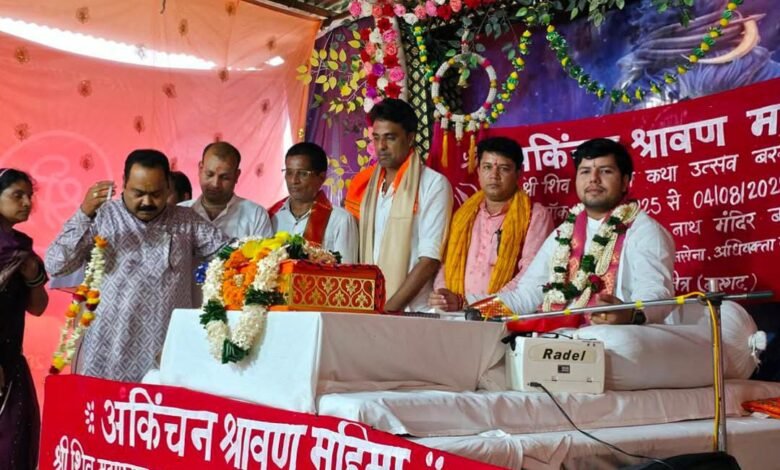 श्री सिद्धेश्वर नाथ महादेव मंदिर बरगढ़ में आयोजित शिव पुराण कथा में पहुंचे भाजपा नेता रविंद्र गबेल, लिया आशीर्वाद