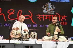 रायगढ़, 29 अगस्त 2025/ अंतरराष्ट्रीय ख्याति प्राप्त चक्रधर समारोह में दिल्ली से आए देश के सुप्रसिद्ध तबला वादक पंडित योगेश शम्सी और उनके साथी कलाकार की सारंगी की जुगलबंदी ने दर्शकों को मंत्रमुग्ध कर दिया। समारोह में पंडित योगेश शम्सी ने अपनी उंगलियों के जादू से तीन ताल की लयकारी प्रस्तुत की। वहीं, उनके साथी कलाकार ने सारंगी की दिल छू लेने वाली धुनों से समारोह में एक मधुरता घोल दी। तबले और सारंगी का यह अनोखा मिलन समारोह को उत्साह और ऊर्जा से भर गया। कलाकारों की इस अद्भुत प्रस्तुति ने सभी श्रोताओं को भावविभोर कर दिया। समारोह स्थल में दर्शकों ने जोरदार तालियों की गडग़ड़ाहट से कलाकारों का अभिनंदन किया।