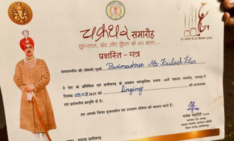 चक्रधर समारोह के प्रशस्ति पत्र का घोर अपमान राष्ट्रीय कलाकार पद्मश्री कैलाश खेर को दिया गया प्रशस्ति पत्र कचरे के ढेर में मिला!