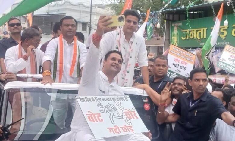 *रायगढ़ : कांग्रेस पार्टी के प्रदेश प्रभारी सचिन पायलट की उपस्थिति में आयोजित रैली के दौरान खरसिया विधायक उमेश पटेल पर गंभीर आरोप लगे हैं। कहा जा रहा है कि उन्होंने भारत के राष्ट्रीय प्रतीक अशोक चक्र के ऊपर जूता रखकर उसका अपमान किया।*