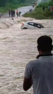 घटना का वीडियो भी सामने आया है, जिसमें साफ दिखाई दे रहा है कि किस तरह कार पानी में बह गई और लोग जान बचाने के लिए संघर्ष करते नजर आए।
