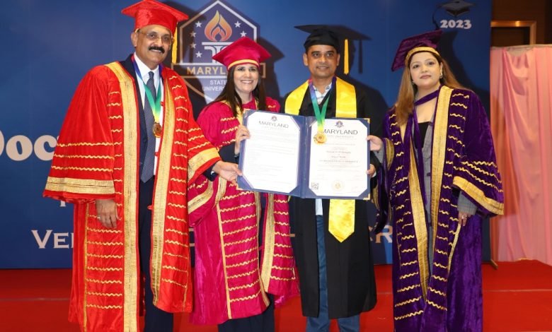 रायगढ़। इंद्रपुरम हेबीटेट सेंटर गाजियाबाद में 16वीं राष्ट्रीय सम्मेलन मेरीलैंड स्टेट यूनिवर्सिटी (यूएसए) की संपन्न हुई जिसमें प्रमुख रूप से योगी प्रियवत्र अनिमेष (योग गुरू), कर्नल अजय अहलावत (अध्यक्ष इंटरपोल इंडिया), कंवल सिंह चैहान पद्मश्री अवार्ड, डाॅ मंजु गुप्ता डीएसएम, मंगलमय गु्रप आफ इंस्टीट्यूशंस, डाॅ. पी.के. राजपूत पूर्व वरिष्ठ उपाध्यक्ष कैटिला फार्मा, हीना पैगाम (जर्नलिस्ट अफगानिस्तान), श्रीमती दीपिका जोशी एजुकेटर गाॅर्जिया, श्रीमती प्राची गुप्ता लेखक, श्रीमती सिम्मी हाॅडिंग (यूएसए) डाॅ अमायरा यादव (काॅर्पोरेट कोच नई दिल्ली), श्रीमती शिवानी शर्मा सिंह (काॅर्पोरेट कोच नई दिल्ली) के द्वारा विभाष सिंह ठाकुर को पीएचडी की उपाधि प्रदान कर सम्मानित किया गया।