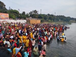 छठ घाटों पर आज सुबह से ही श्रद्धालुओं की भारी भीड़ उमड़ पड़ी। महिलाएं पारंपरिक वेशभूषा में पूजन सामग्री लेकर घाटों पर पहुंचीं और पूरे विधि-विधान से सूर्य देव को अर्घ्य अर्पित किया। चारों ओर ‘जय छठी मइया’ के जयघोष से वातावरण गुंजायमान हो उठा। नगर के प्रमुख घाटों पर सुरक्षा और स्वच्छता के विशेष इंतजाम प्रशासन एवं स्वयंसेवी संगठनों की ओर से किए गए थे। भाजपा पदाधिकारियों ने भी श्रद्धालुओं की सहायता में सक्रिय भूमिका निभाई।