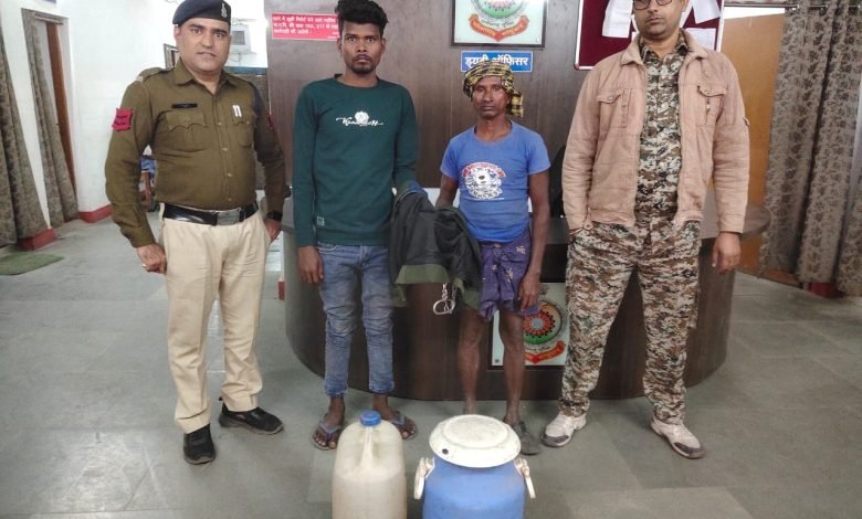 *रायगढ़* । वरिष्ठ पुलिस अधीक्षक श्री सदानंद कुमार द्वारा अवैध शराब पर जागरूकता के साथ प्रभावी कार्यवाही के दिए निर्देशों के क्रम में आज दिनांक 17/12/2023 को थाना प्रभारी कोतरारोड़ निरीक्षक विजय चेलक के नेतृत्व में कोतरारोड पुलिस द्वारा लगाये मुखबीरों से अवैध शराब बनाने एवं अवैध बिक्री की सूचनाओं लेकर ग्राम बोकरामुडा और ग्राम कृष्णापुर में शराब रेड कार्यवाही किया गया है । टीआई विजय चेलक को सूचना मिली थी कि ग्राम बोकरामुडा का में आरोपी सहेत्तर सारथी अवैध रूप से शराब की बिक्री करता है । रेड कार्रवाई पर आरोपी सहेत्तर सारथी पिता फिरतु सारथी बोकरामुडा थाना कोतरारोड़ के पास से 25 लीटर महुआ शराब कीमत ₹2500 रुपए तथा ग्राम कृष्णापुर में आरोपी रोशन चौहान पिता सुदन चौहान उम्र 26 वर्ष सा0 कृष्णापुर थाना कोतरारोड के घर में हाथ भट्टी से निर्मित महुआ शराब 15 लीटर कीमत ₹1500 का विधिवत बरामद कर जप्त किया गया है । थाना कोतरारोड़ में दोनों आरोपियों पर पृथक-पृथक धारा 34(2), 59(क) आबकारी एक्ट के तहत कार्यवाही की गई है । थाना प्रभारी कोतरारोड़ निरीक्षक विजय चेलक के नेतृत्व शराब रेड कार्यवाही में सहायक उप निरीक्षक कुसुम कैवर्त, हेमसागर पटेल, प्रधान आरक्षक करुणेश राय, आरक्षक विकास कुजूर और राकेश नायक शामिल थे ।