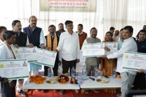 कार्यक्रम के दौरान विभागीय योजनाओं के अंतर्गत 15 हितग्राहियों को सामग्री एवं चेक का वितरण किया गया। कार्यक्रम के दौरान कृषक संगोष्ठी का आयोजन भी किया गया, जिसमें किसानों को उन्नत कृषि पद्धतियों, आधुनिक तकनीक और सरकारी योजनाओं की जानकारी दी गई।इस अवसर पर कृषक प्रतिनिधि श्री आमोद नायक एवं श्री माधव साव द्वारा प्रभारी मंत्री को जैविक जवाफूल चावल भेंट किया गया। इस अवसर पर नगर निगम महापौर श्री जीवर्धन चौहान, सभापति श्री डिग्रीलाल साहू, जनपद पंचायत पुसौर अध्यक्ष श्रीमती हेमलता चौहान, श्री अरुण धर दीवान, श्री अभिषेक शुक्ला, श्री उमेश अग्रवाल, श्री विकास केडिया, कलेक्टर श्री मयंक चतुर्वेदी, पुलिस अधीक्षक श्री दिव्यांग पटेल, जिला पंचायत सीईओ श्री अभिजीत बबन पठारे, एसडीएम श्री महेश शर्मा सहित संबंधित अधिकारी-कर्मचारी, जनप्रतिनिधिगण एवं बड़ी संख्या में कृषक उपस्थित रहे।