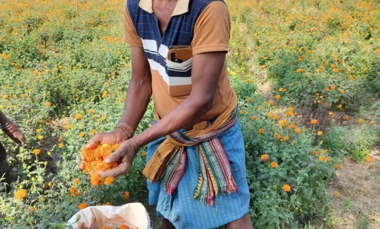 गेंदा की खेती से देवानंद निषाद कर रहा एक एकड़ में 2.5 लाख की कमाई अन्य किसान रबी फ़सल में धान के स्थान पर गेंदा की खेती की ओर हो रहे हैं अग्रसर