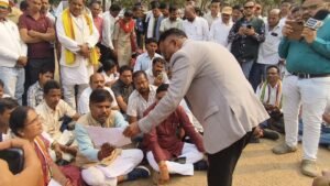 धान बिक्री में हो रही परेशानियों और टोकन व्यवस्था की गंभीर गड़बड़ियों को लेकर आज सक्ती कलेक्ट्रेट में किसानों ने जोरदार धरना-प्रदर्शन किया। यह आंदोलन चन्द्रपुर विधायक रामकुमार यादव के नेतृत्व में आयोजित किया गया, जिसमें जिले भर से बड़ी संख्या में किसान एवं कांग्रेस कार्यकर्ता शामिल हुए।