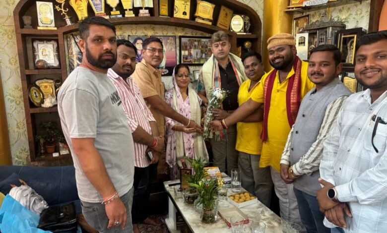 कांग्रेस नेता त्रिलोक श्रीवास से हाई कोर्ट बार एसोसिएशन की उपाध्यक्ष श्रीमती मांडवी भारद्वाज ने किया भेंट,